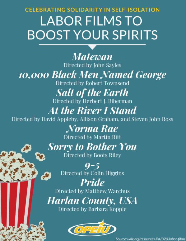 As we continue to practice social distancing measures to protect ourselves and others, there has never been a better time to reflect on the struggles and sacrifices of those who came before us. OPEIU has put together a short and certainly non-exhaustive list of labor films worth watching as we weather this crisis together.